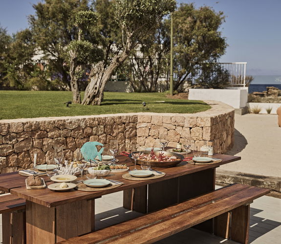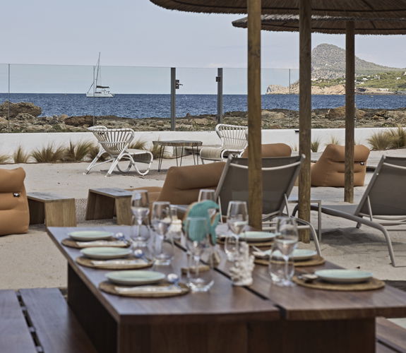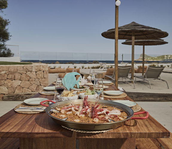 Een verheven feestmaal. Genieten van de beste mediterrane keuken van Ibiza, op een steenworp afstand van de hemel, wordt een onvergetelijke ervaring. Of het nu gaat om een cocktail bij het zwembad of een diner onder de sterren, het wordt het perfecte ritueel op het dakterras om te genieten van het mooiste uitzicht op de zonsondergang boven San José, tegen de rustige achtergrond van de baai van San Antonio.